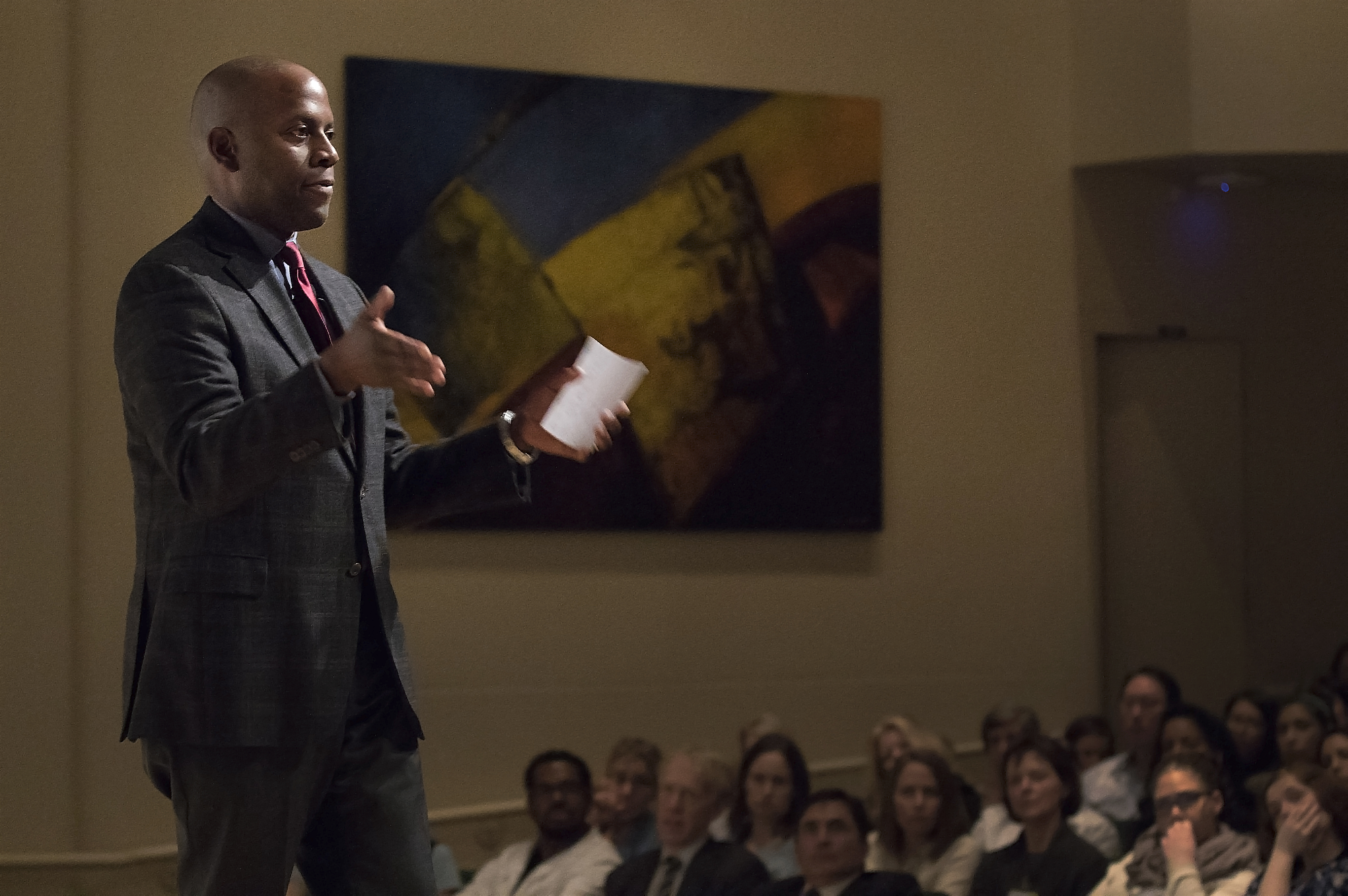 Brian Williams, M.D., F.A.C.S., stood alone on the stage at the OHSU Auditorium, reading some of the names of African-Americans who have been shot by police in the past few years.
