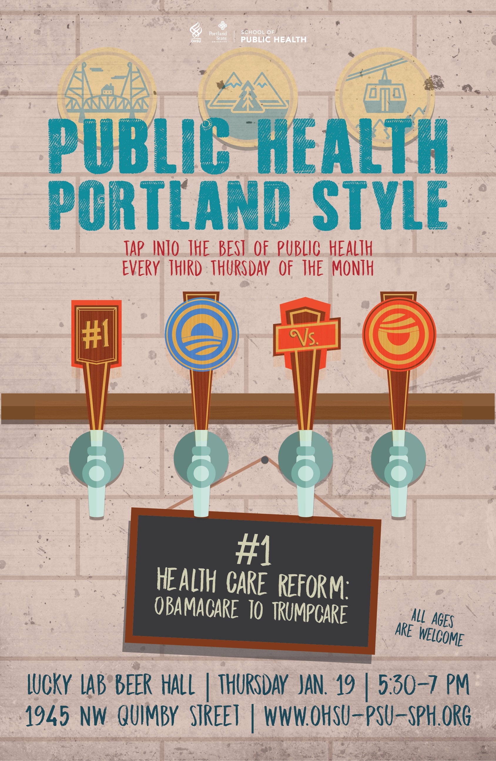 “Health care reform: Obamacare to Trumpcare” will take place Thursday, Jan. 19, at 5:30 p.m. at the Lucky Lab, 1945 N.W. Quimby St., Portland. The event is free and people of all ages are welcome.