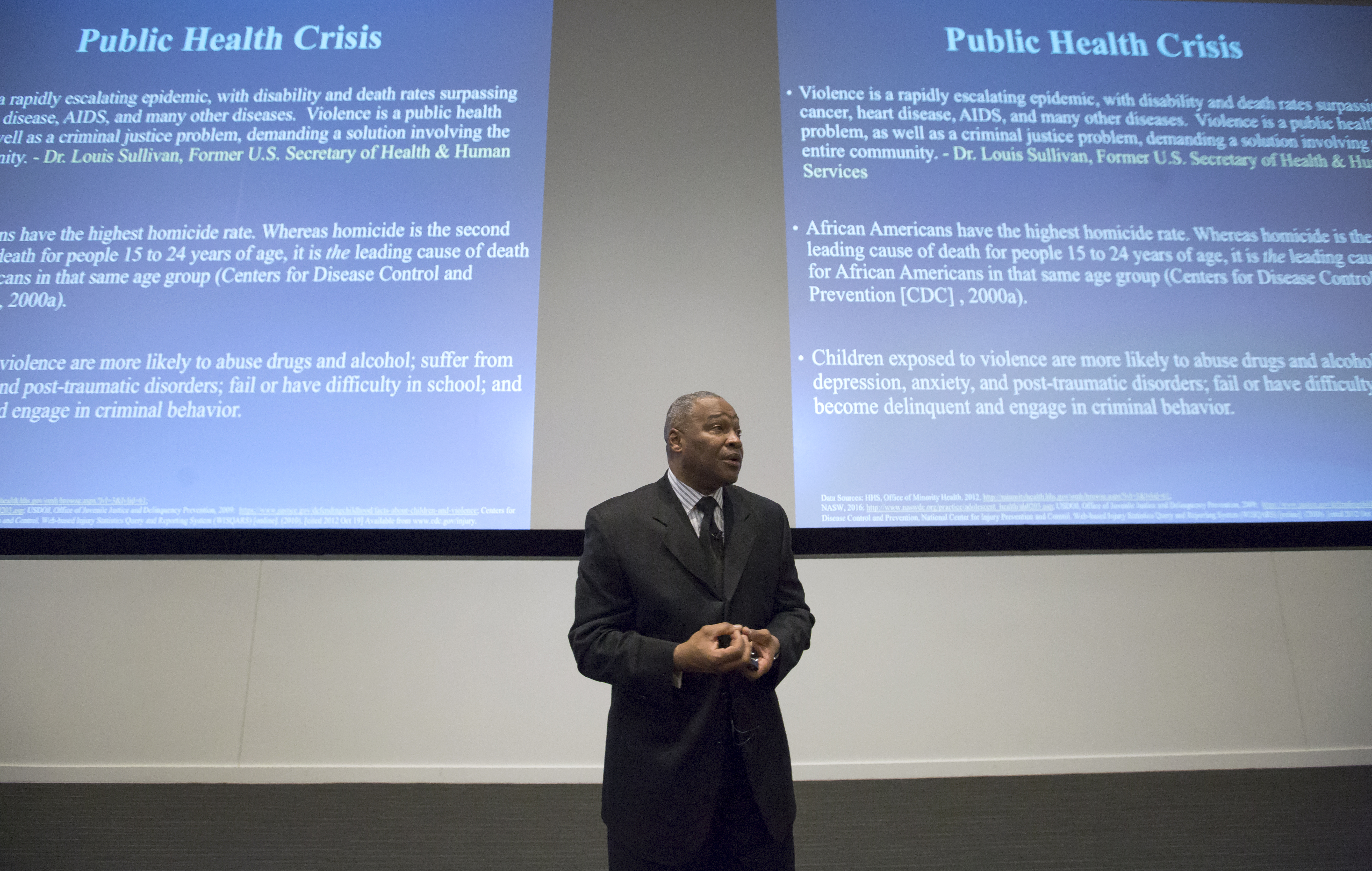 OHSU Equity and Inclusion Vice President Brian Gibbs, Ph.D., M.P.A. speaks at the Gun Violence as a Public Health Issue forum, held January 25, 2017 at OHSU. (OHSU/Kristyna Wentz-Graff)