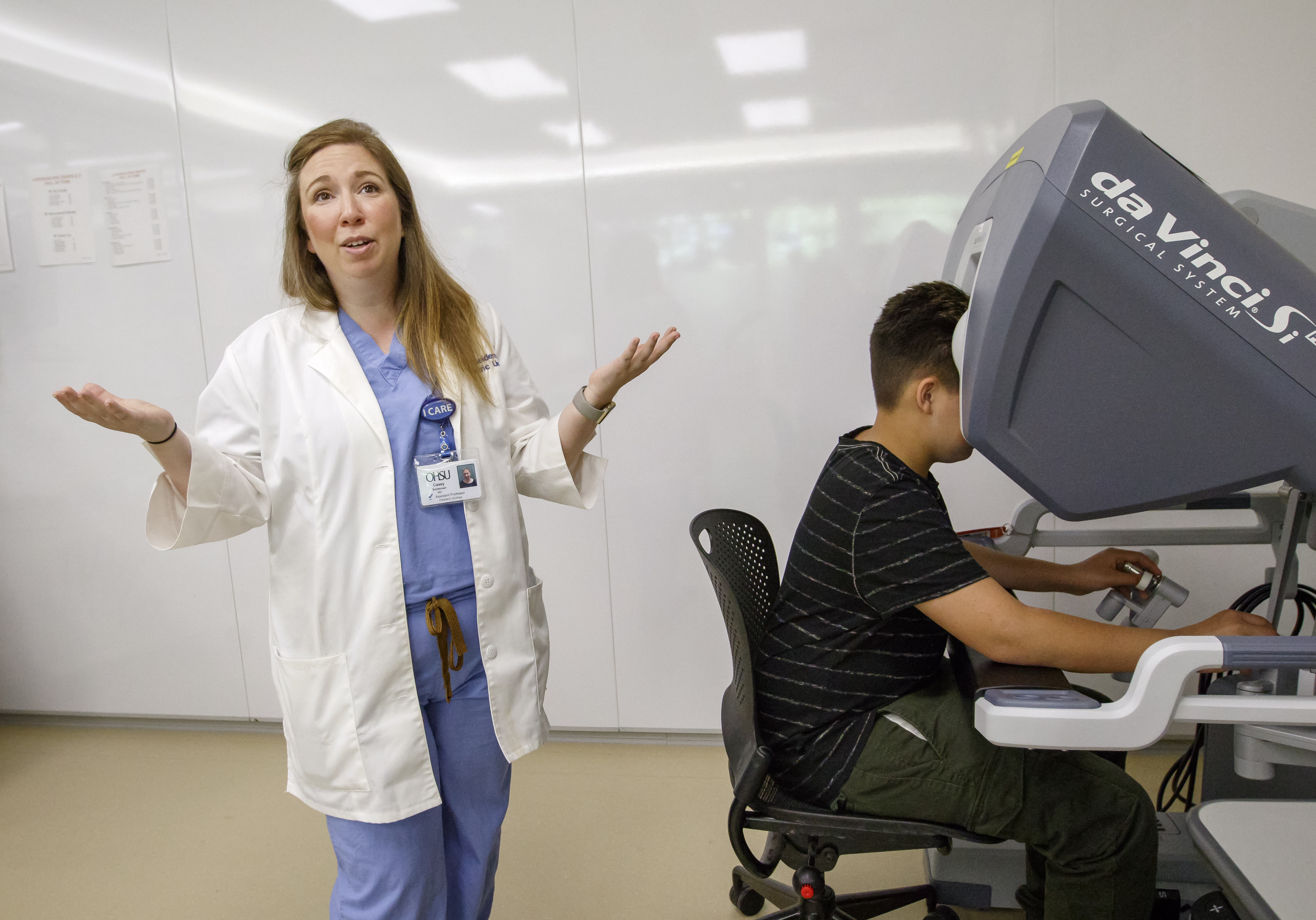 This past spring, the Garcia family returned to OHSU so Nathan could test his skills with a robotic simulator, akin to the technology Seideman used in the operating room. Nathan jumped right in, easily completing virtual tasks intended for surgical resident training.