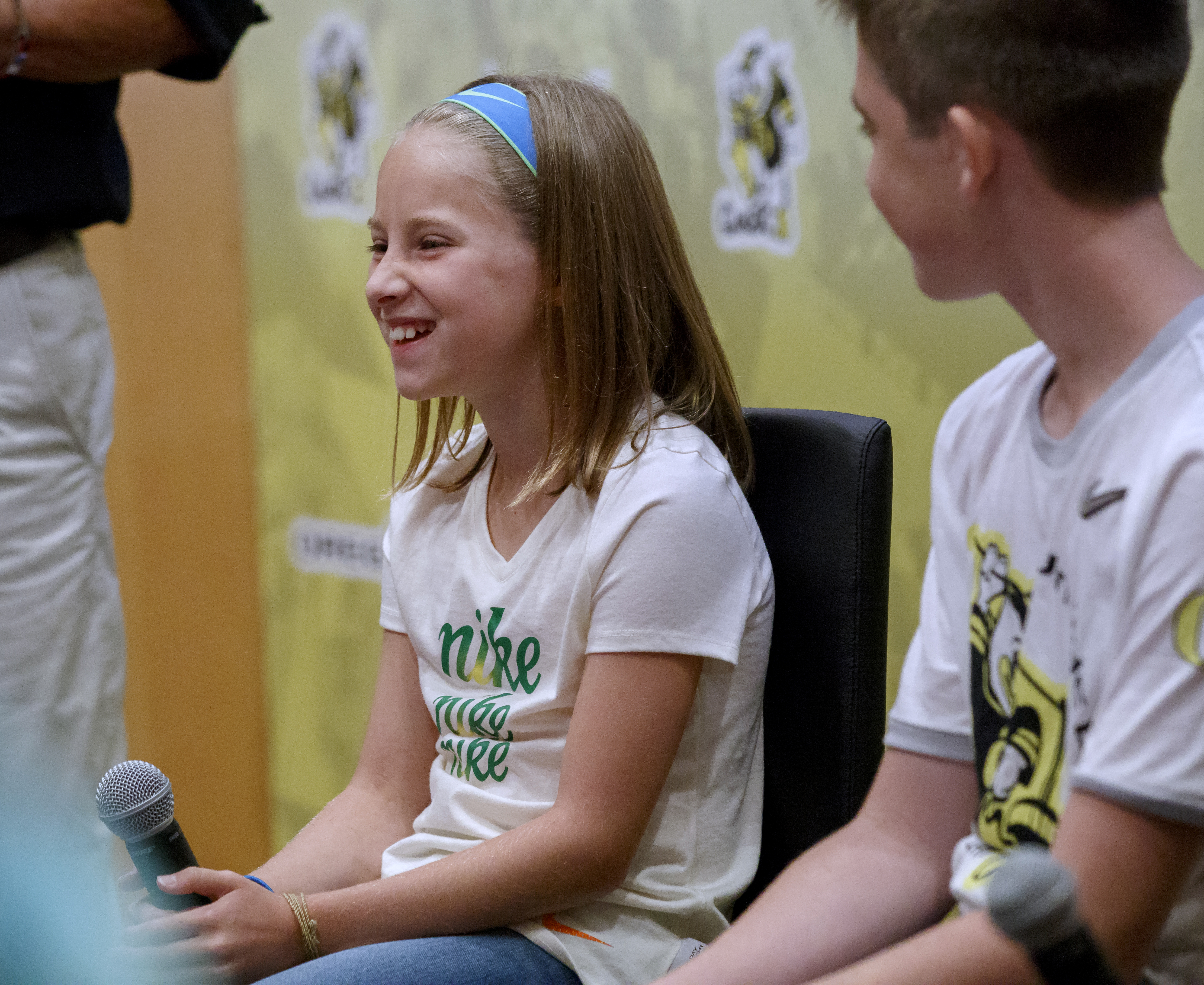 Nike unveiled a new football uniform designed for the University of Oregon through a partnership with OHSU Doernbecher Children's Hospital, August 23, 2017. The uniform was designed through a collaboration between three Doernbecher patients, Nike designers and University of Oregon student athletes. (OHSU/Kristyna Wentz-Graff)