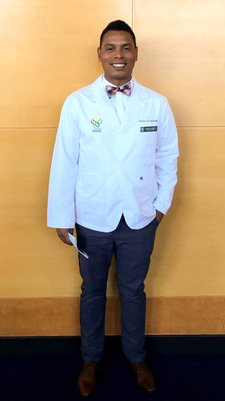 Just two years following his Equity internship acceptance, Akins participated in the White Coat Ceremony, signifying the beginning of his training at the OHSU School of Medicine.