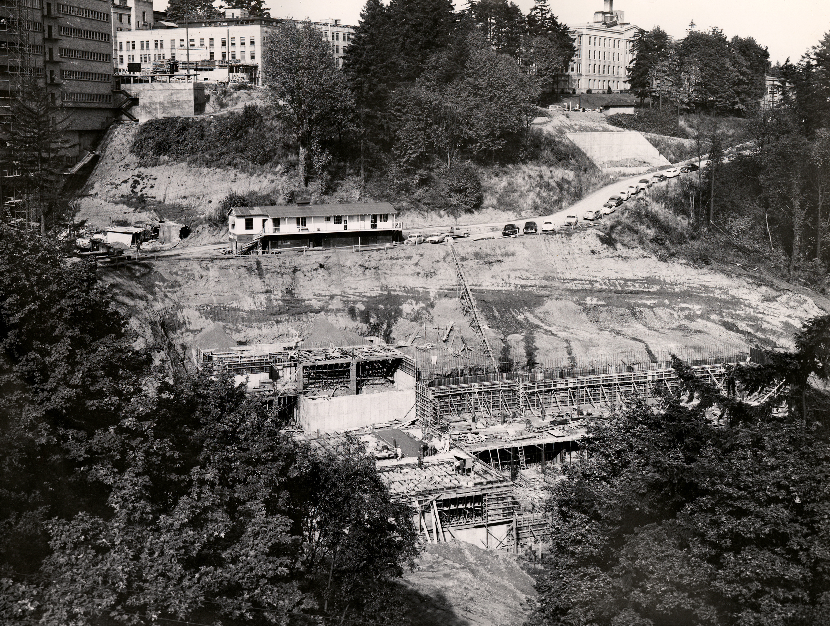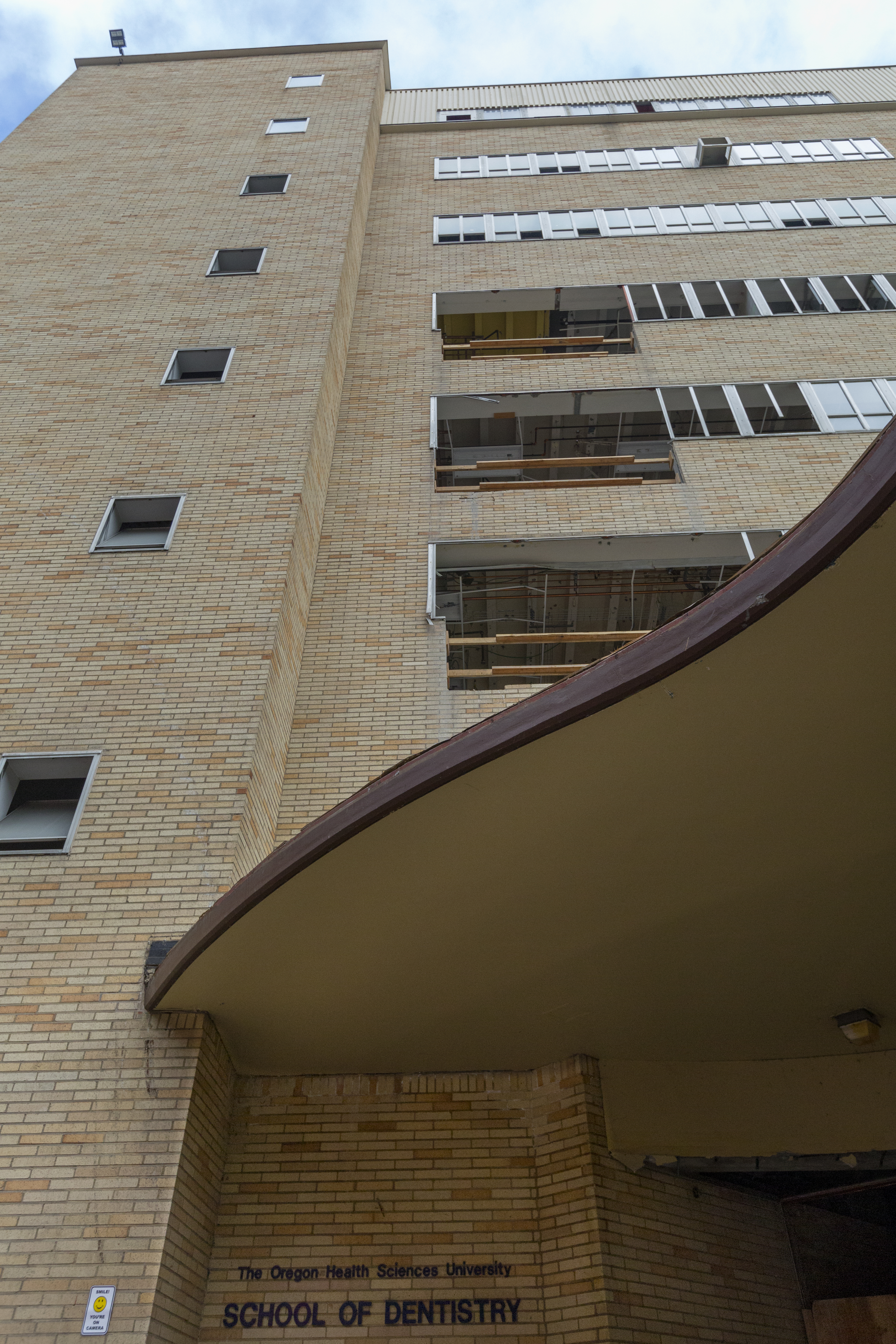 The dino-demolition will continue on and off for the next few months. Clean-up efforts will continue at the site through the summer. Crews are midway through the two-year demolition project to remove the 1956 building. The building has sat vacant since the School of Dentistry moved to the Skourtes Tower on OHSU’s South Waterfront Campus in 2014.