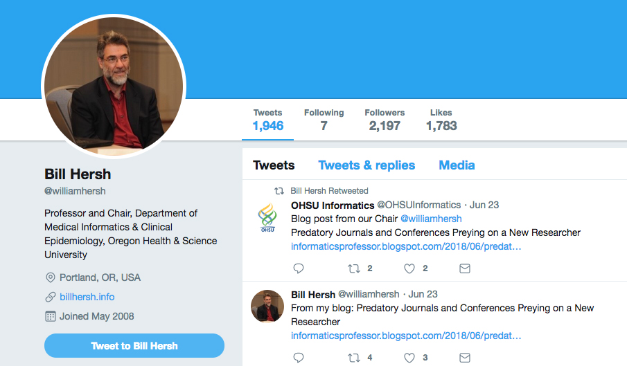 Bill Hersh, M.D. @williamhersh