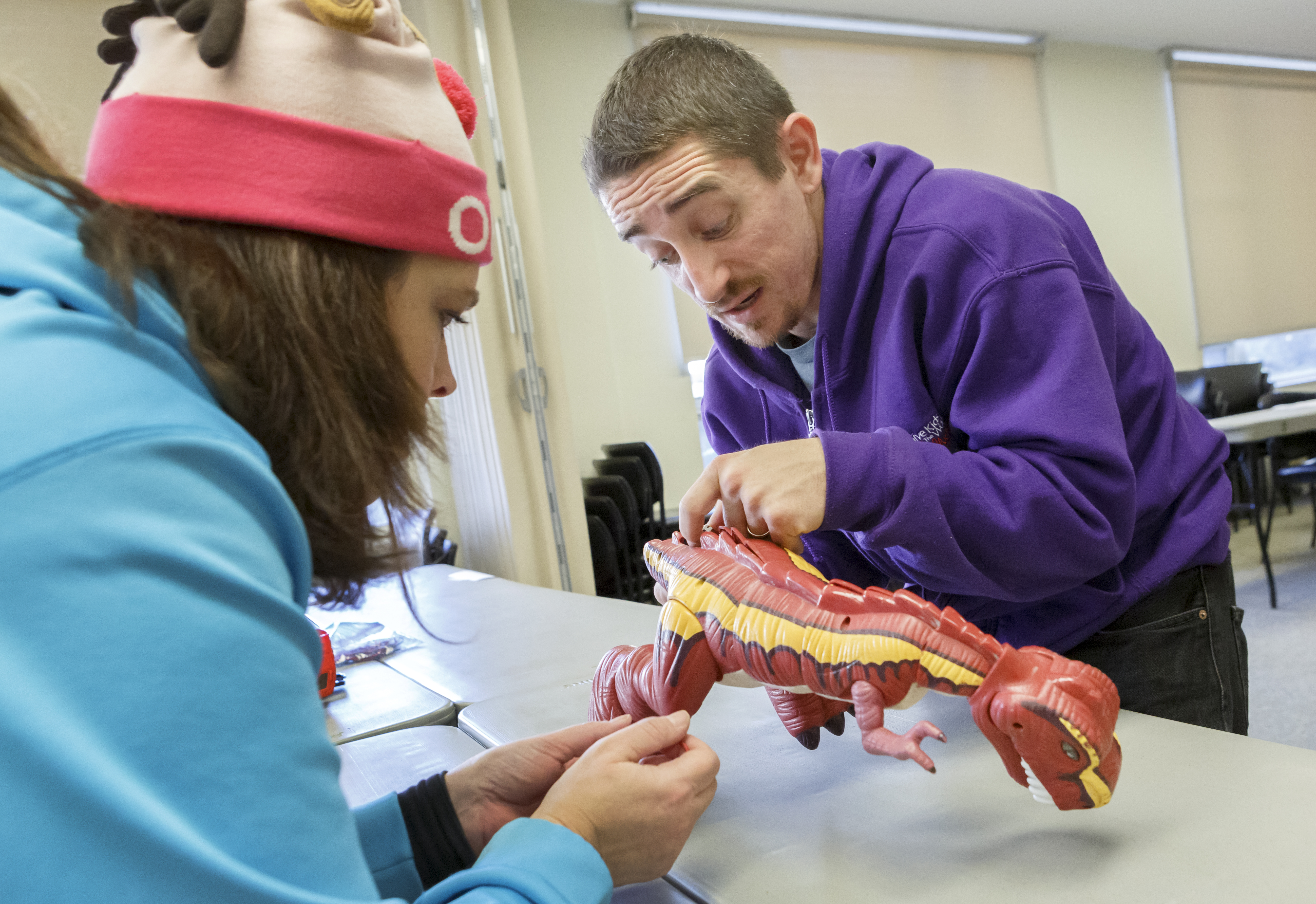 Last year Hoyt brought in Winnie’s favorite toy to the Go Baby Go build -- a small lamp that plays music and lights up. “It was the first toy she was ever attracted to,” says Hoyt. With guidance from the volunteers at the Adapt-A-Gift event, she was able to adapt the toy to meet her child’s abilities.