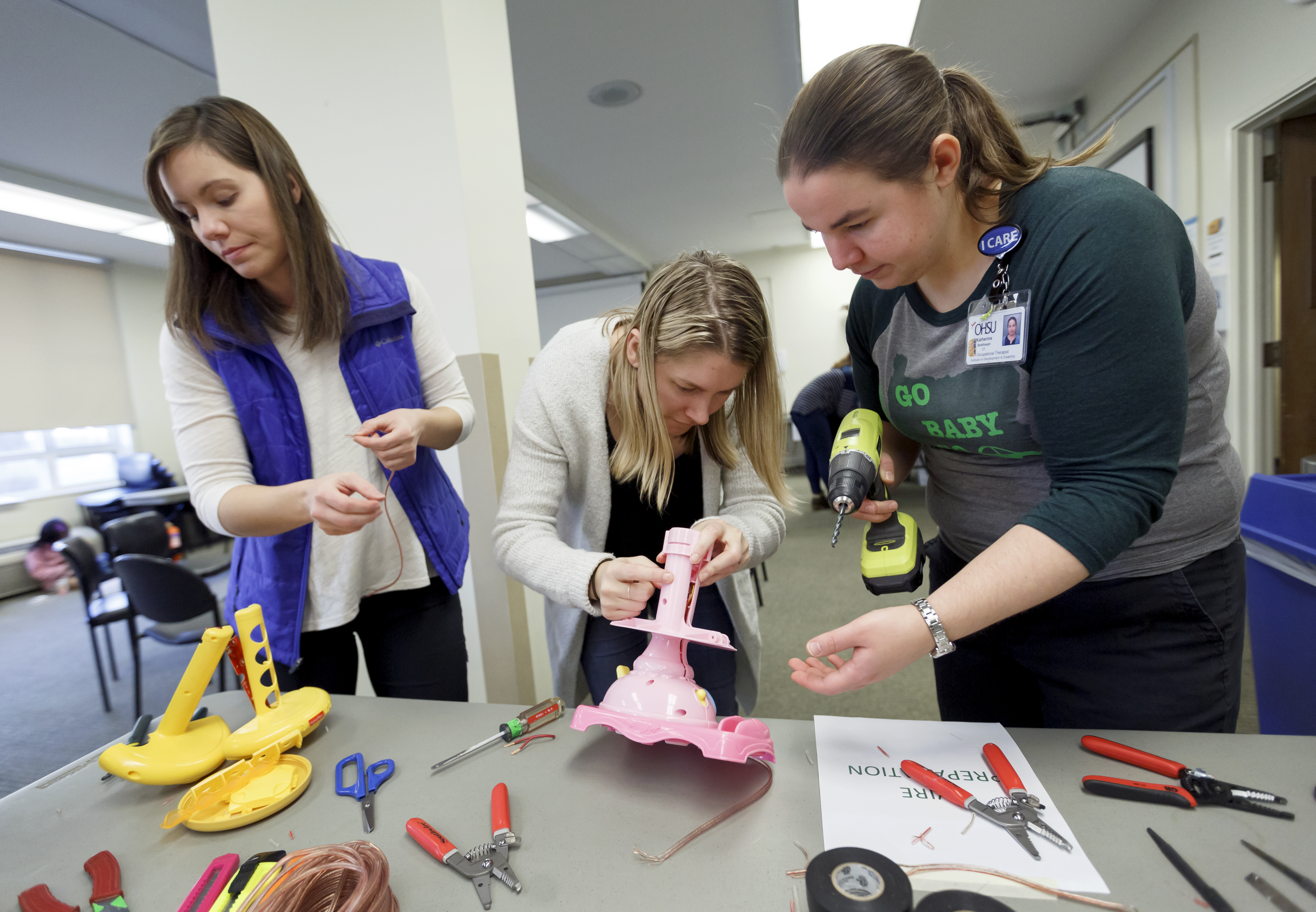 Volunteers from the nonprofit program Go Baby Go aim to help make the process a little easier for families. They hosted their annual Adapt-A-Gift event this past weekend. at the Community Vision Assistive Technology Lab in Portland for families and health care practitioners, and, over the course of several hours, modified toys to engage children of all abilities.