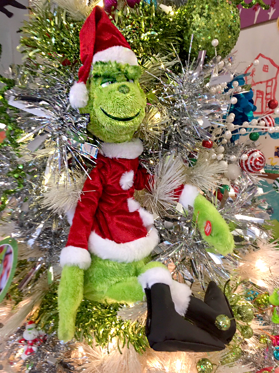 Volunteers from the Healing Hunter Foundation transformed the oncology unit at OHSU Doernbecher Children's Hospital on Dec. 1., to a holiday Whoville. The Grinch and Cindy Lou Who take a reading break. (Photo courtesy The Healing Hunter Foundation)