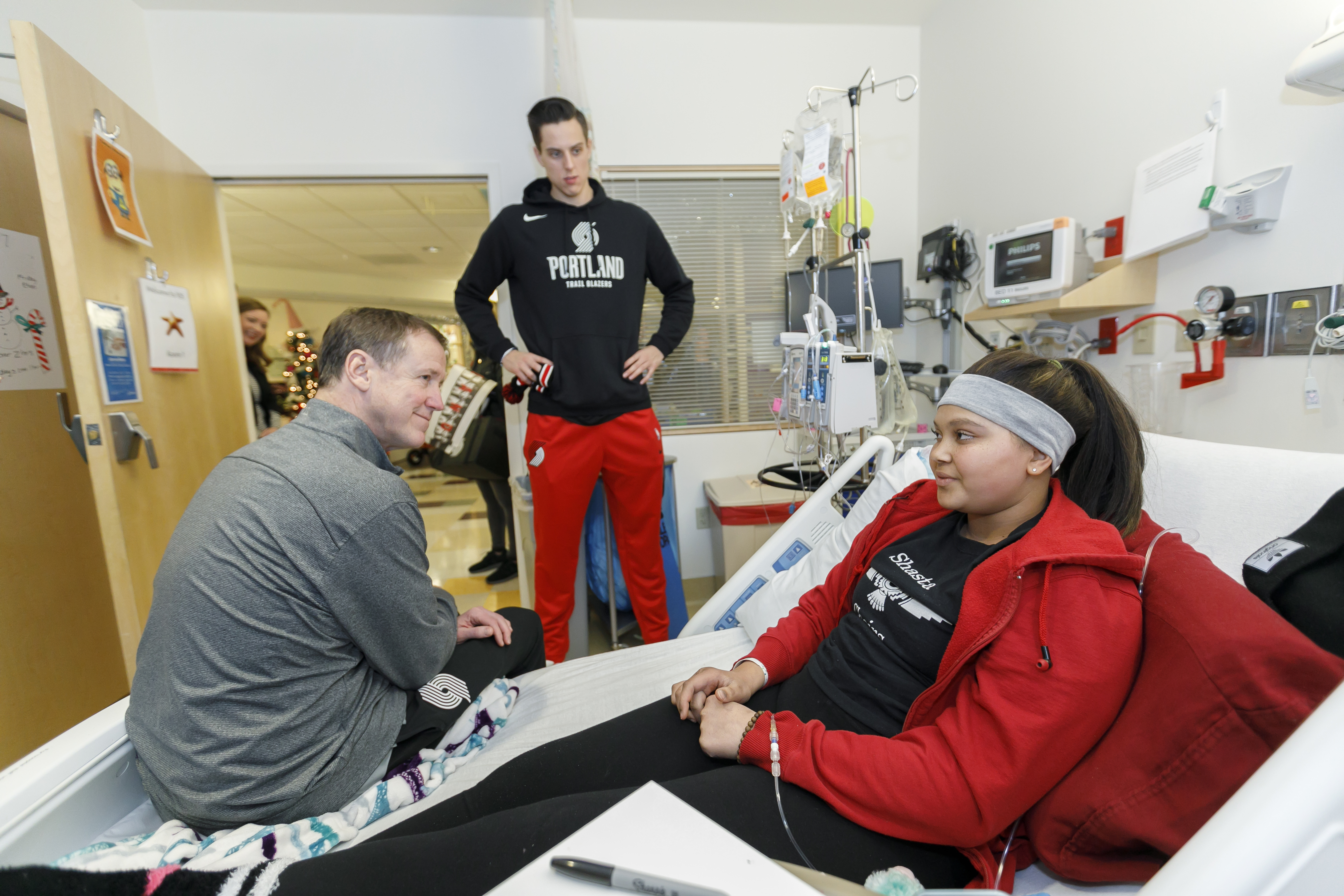 Members of the Trail Blazers hung out at OHSU Doernbecher, signing autographs and playing games.