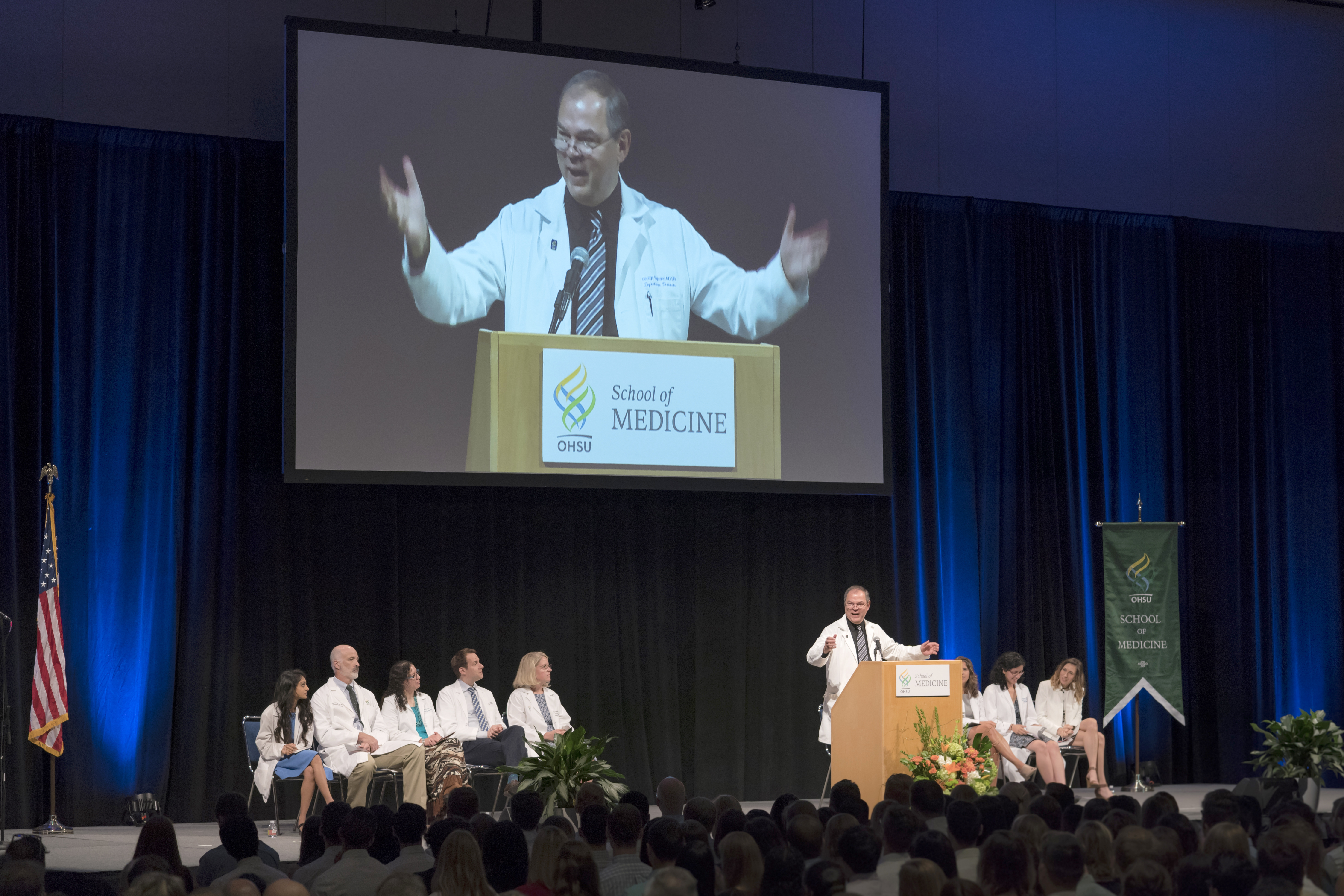 “Putting on the white coat ushers in a lifetime of public service,” said George Mejicano, M.D., senior associate dean for education in the OHSU School of Medicine. “I urge all of you to make your voices heard. Get involved in your community and take action whenever and wherever you see injustice. Only people can produce the solutions we need, and we desperately need them. Our hopes are in good hands in each of you.”
