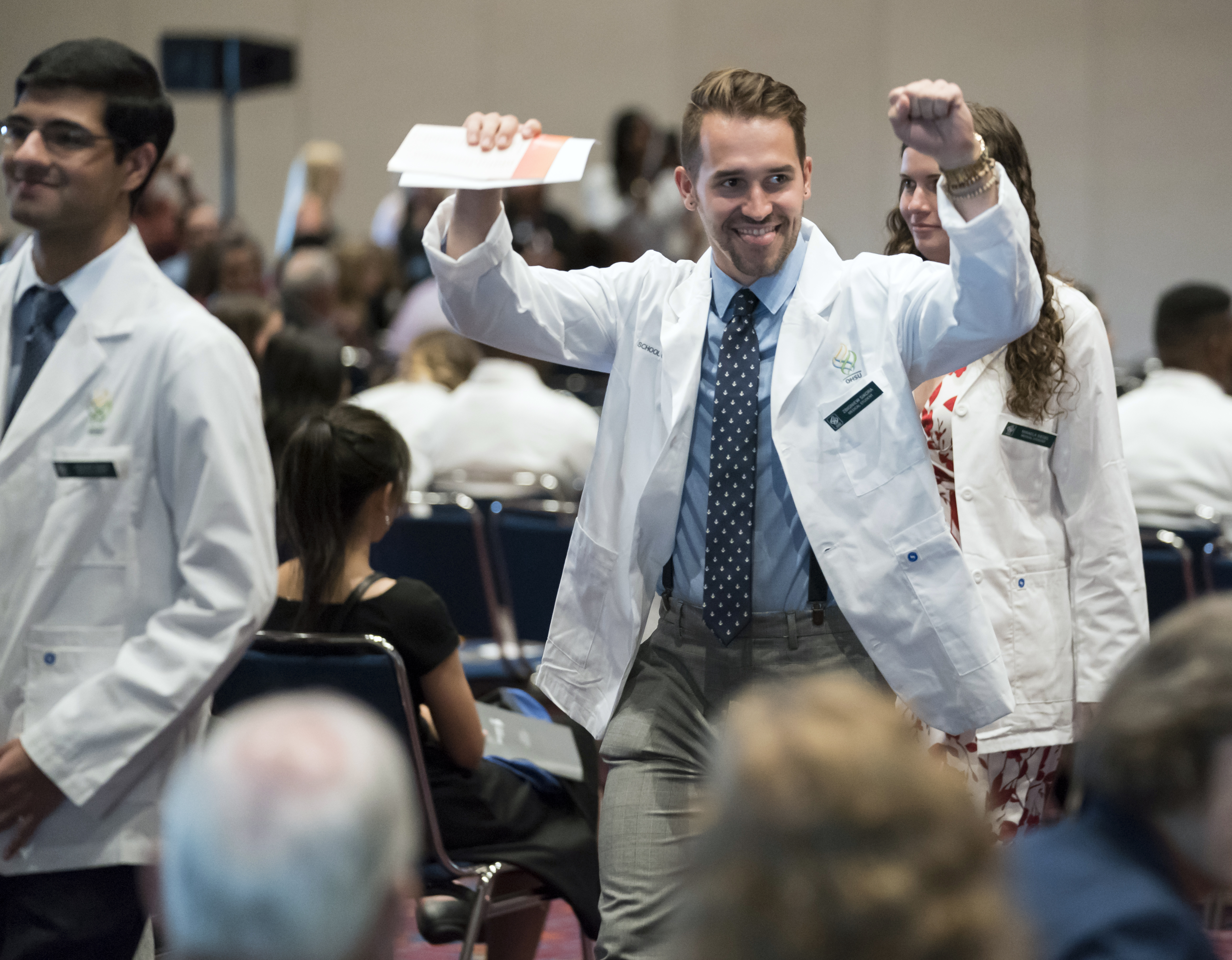 As they stood white-coated shoulder to shoulder reciting the Oath of Geneva, the voices of the 160 members of the incoming OHSU M.D. Class of 2023 were joined by those of physicians in the audience and the smiles and tears of family members, friends and mentors.
