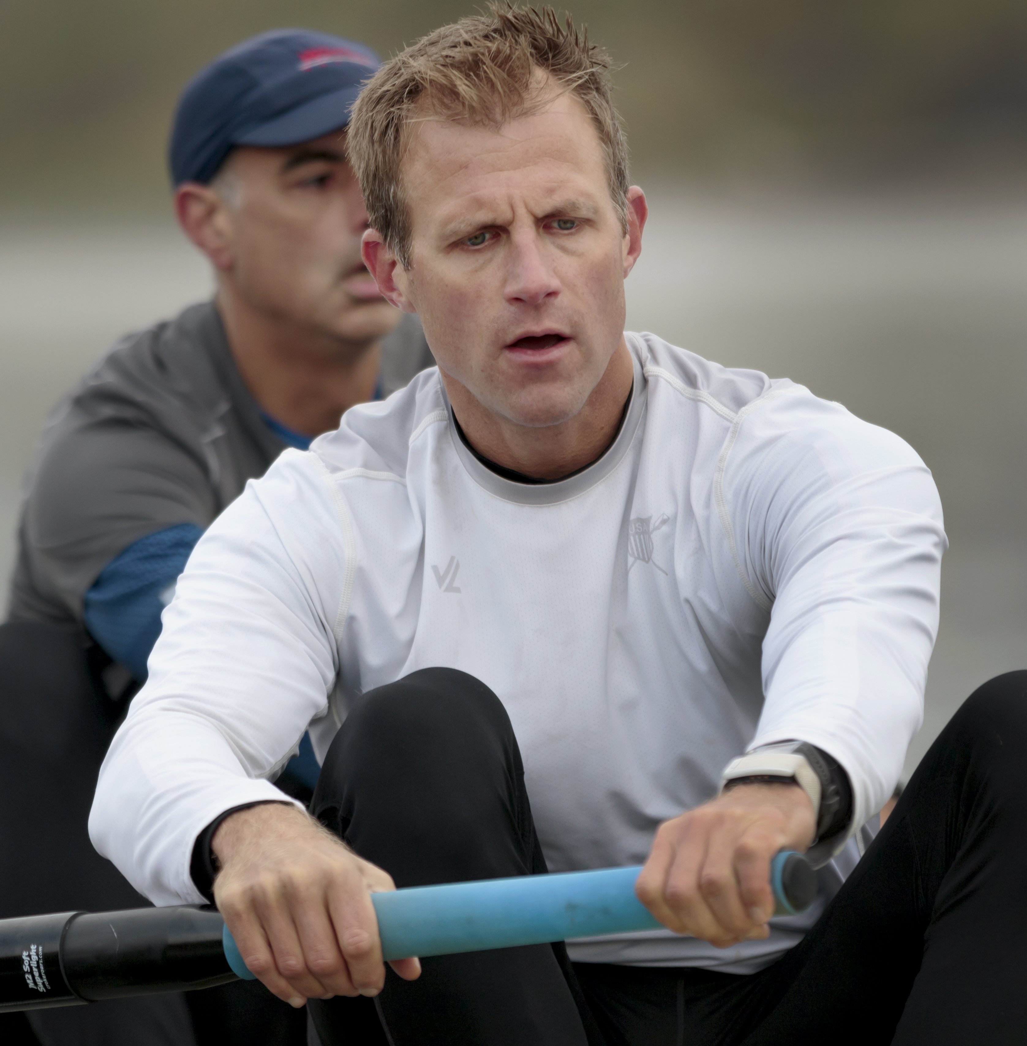 closeup of vogt's hands on the oars