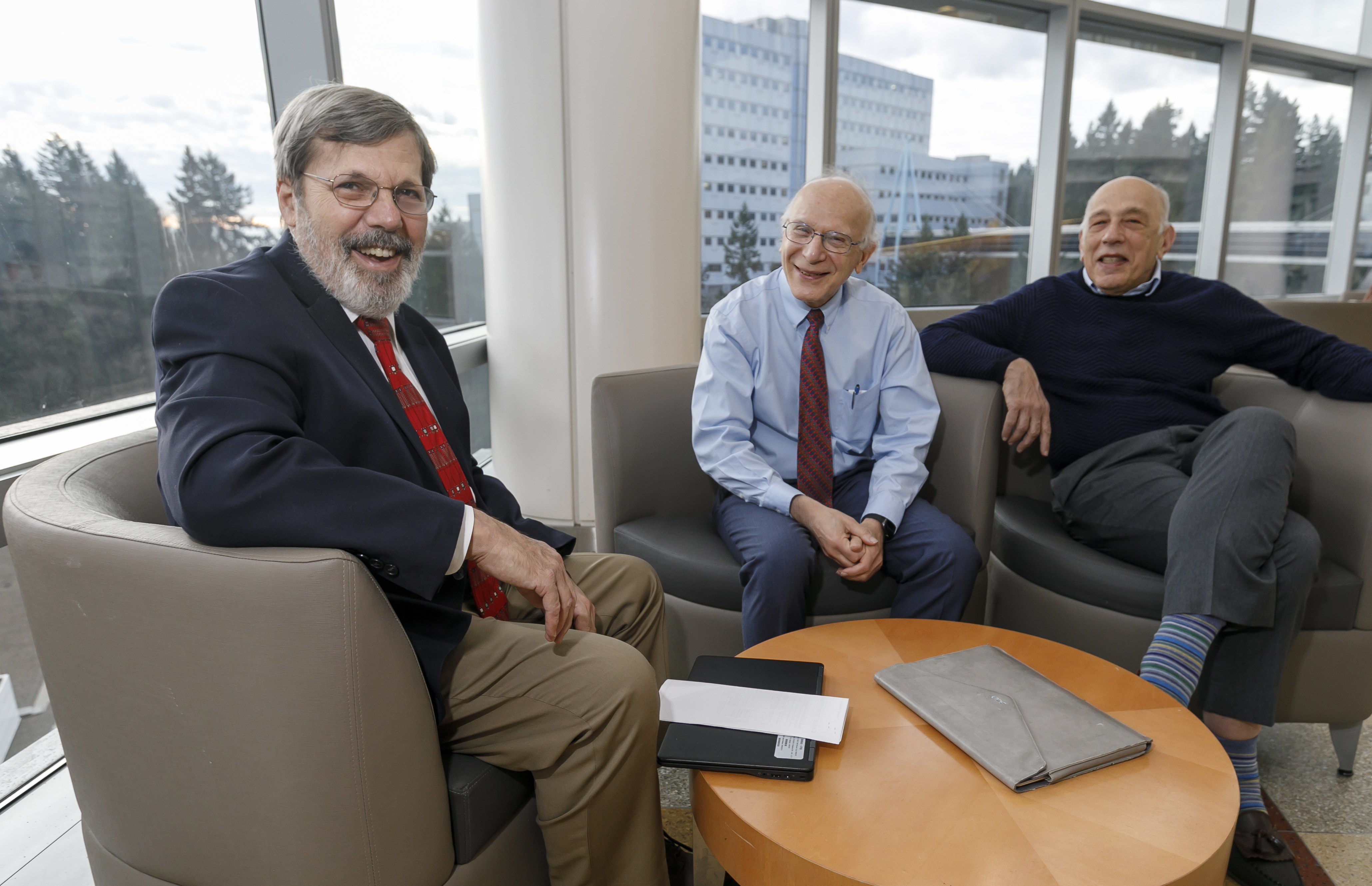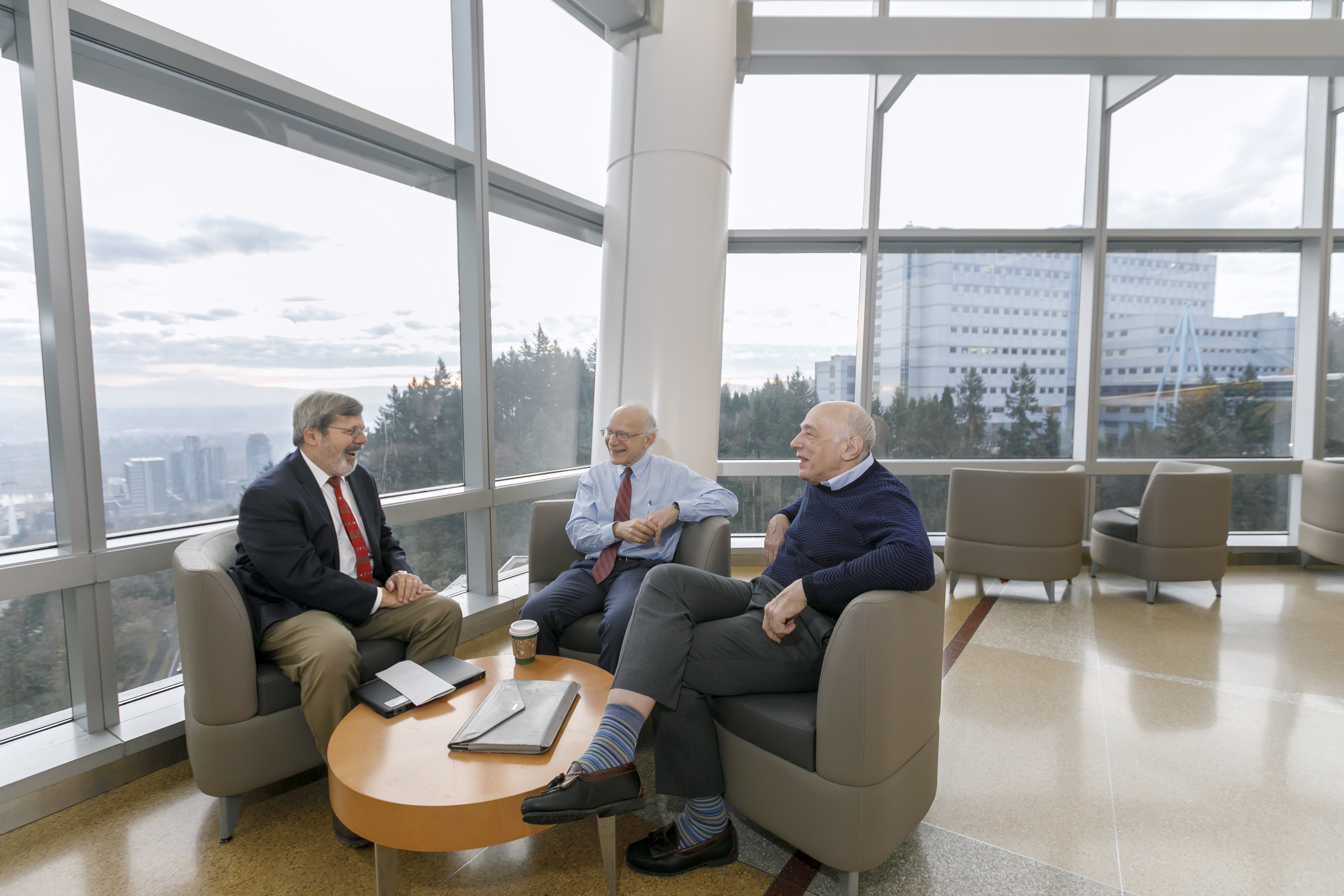 They sit casually around the table, laughing and gently poking fun as they correct each other’s recollections. It’s not a typical scientific meeting of the minds, though the brainpower in the room would certainly qualify as such. The jovial conversation focuses not on their own successes, but on the achievements of other accomplished Oregonians who have received national or international acclaim in the fields of science and medicine.
