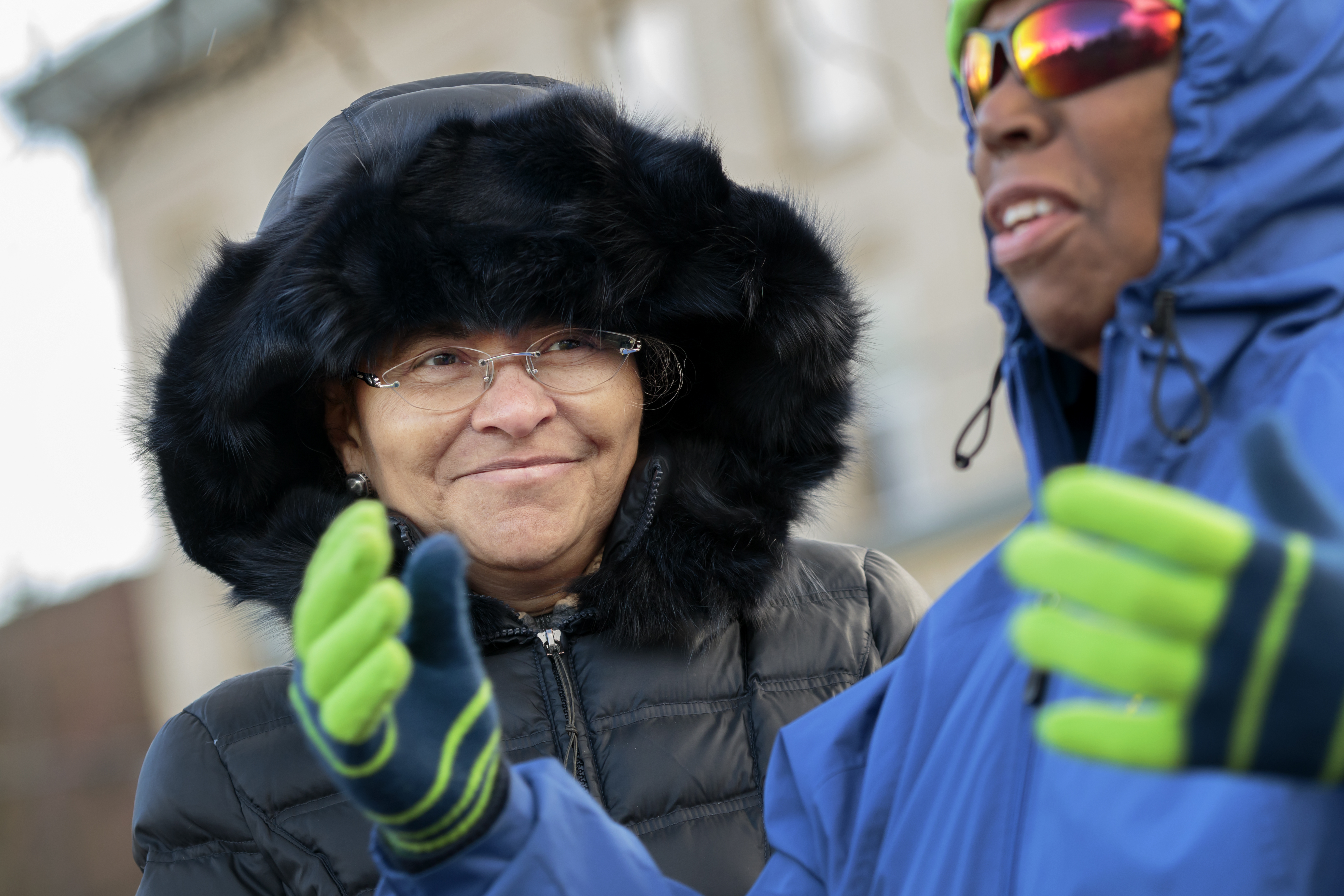 The Multnomah County Health Department hosted her for breakfast Tuesday, and she met Raina Croff, Ph.D., assistant professor of neurology, OHSU School of Medicine, at a North Vancouver Avenue café to learn about Croff’s research on the impacts of gentrification – and of retelling and reclaiming the neighborhood’s history – to the cognitive health of African Americans. Together they walked the rapidly changing neighborhood with Croff’s colleague, Sara King, Ph.D., postdoctoral fellow in neurology, OHSU School of Medicine, and two research subjects, longtime Portlanders Gahlena Maxey-Easterly and Sharon Steen.