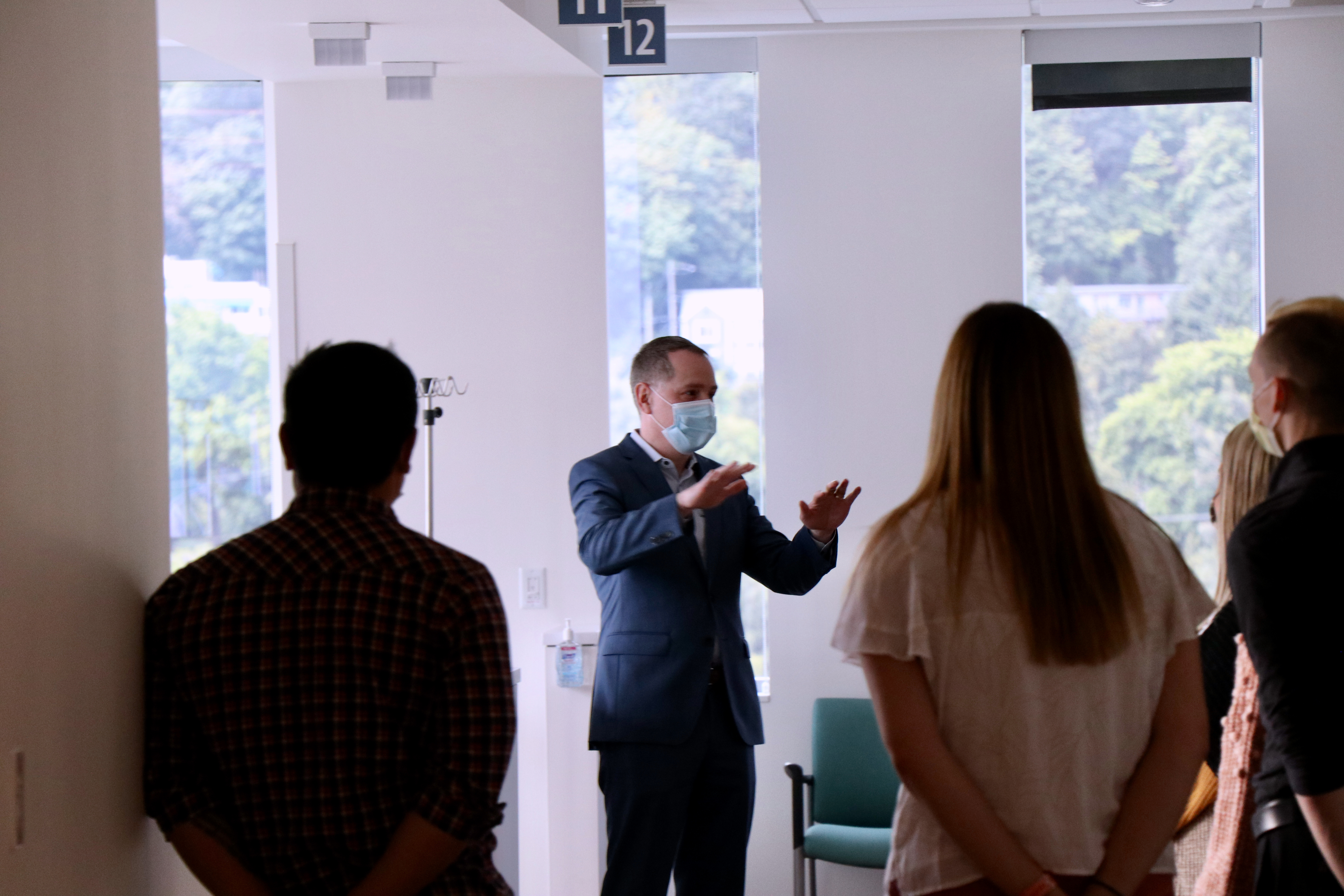 “This new unit allows us to centralize everything in a setting designed for a patient’s convenience and comfort,” said Patrick McCormick, M.B.A., vice president of oncology services in the Knight Cancer Institute. “Our patients in research studies can come in for their initial blood work and continue through their post treatment observation all in one place and are surrounded by a team of experts guiding them through the process.”